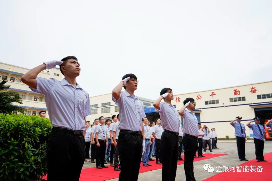 在偉大的祖國73周年華誕之際,佛山市金銀河智能裝備股份有限公司全體員工在公司管理層的帶領下,懷著激昂的心情參加了莊嚴的升旗儀式。