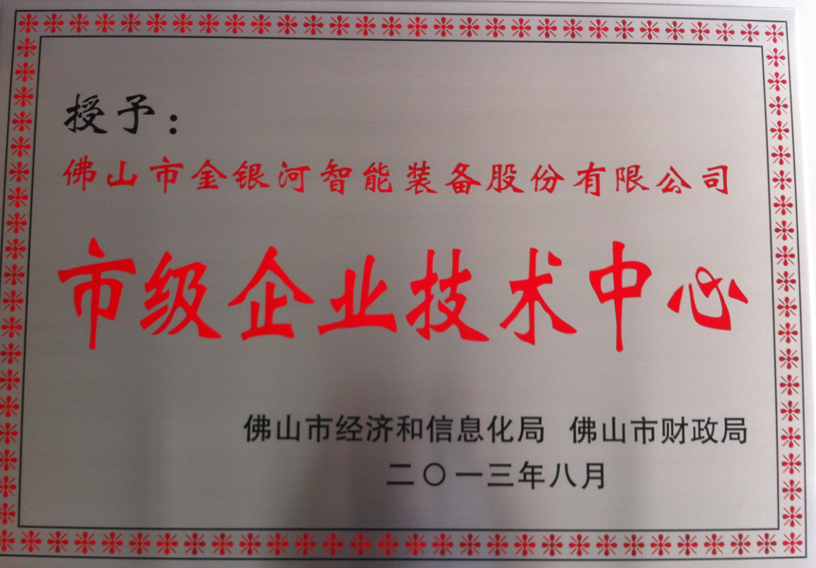 2013年8月,經(jīng)佛山市經(jīng)濟(jì)和信息化局、佛山市財(cái)政局共同簽署認(rèn)定,金銀河被認(rèn)定為“佛山市市級(jí)企業(yè)技術(shù)中心”。
